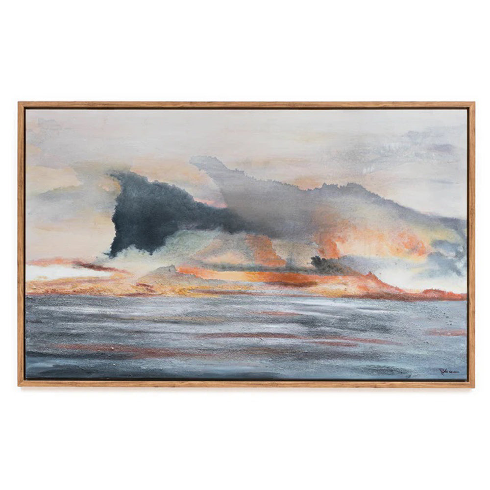 This artwork captures the fleeting magic of a horizon at dusk-a blend of stormy skies and warm glows, evoking peace, introspection, and wonder. Perfect for modern interiors that value both minimalism and emotional warmth.