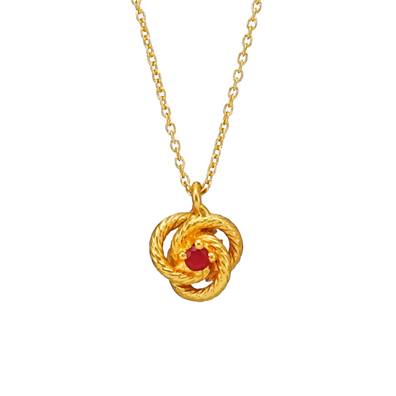 This geometrically defined necklace features three set in one another loops with a red Crystal. These playful pendants are fun to fidget with!