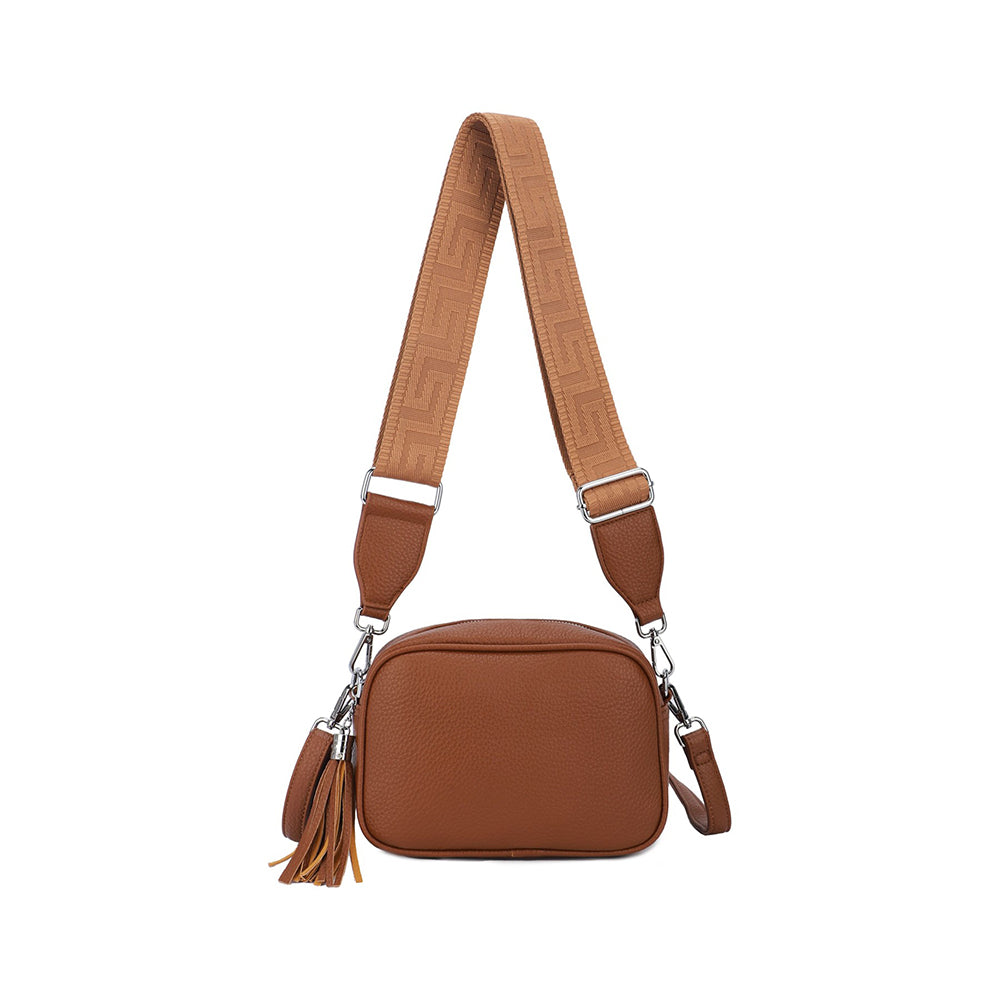 Camera Tassel Crossbody Bag with 2 straps - Brown