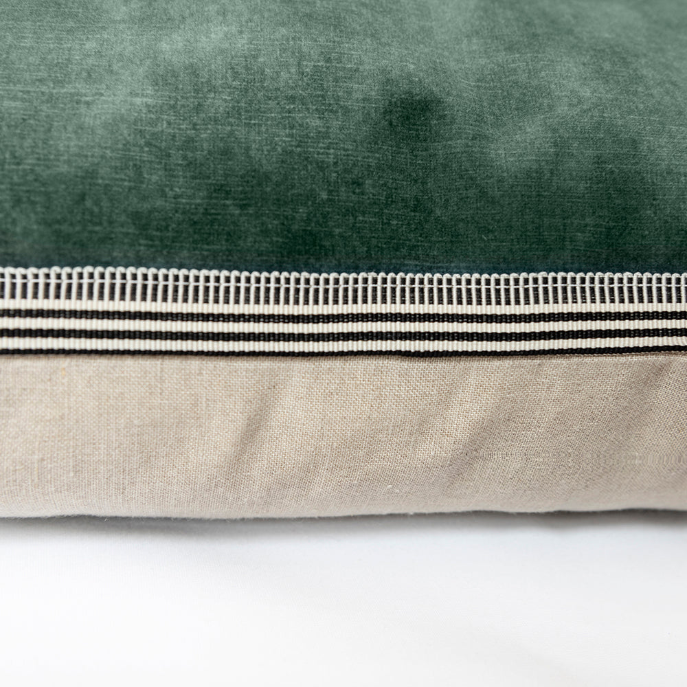 The Manade rectangular cushion by Casamance offers a solid finish contrasting with the striped borders. This shimmering model brings a sophisticated and elegant note to living spaces.
