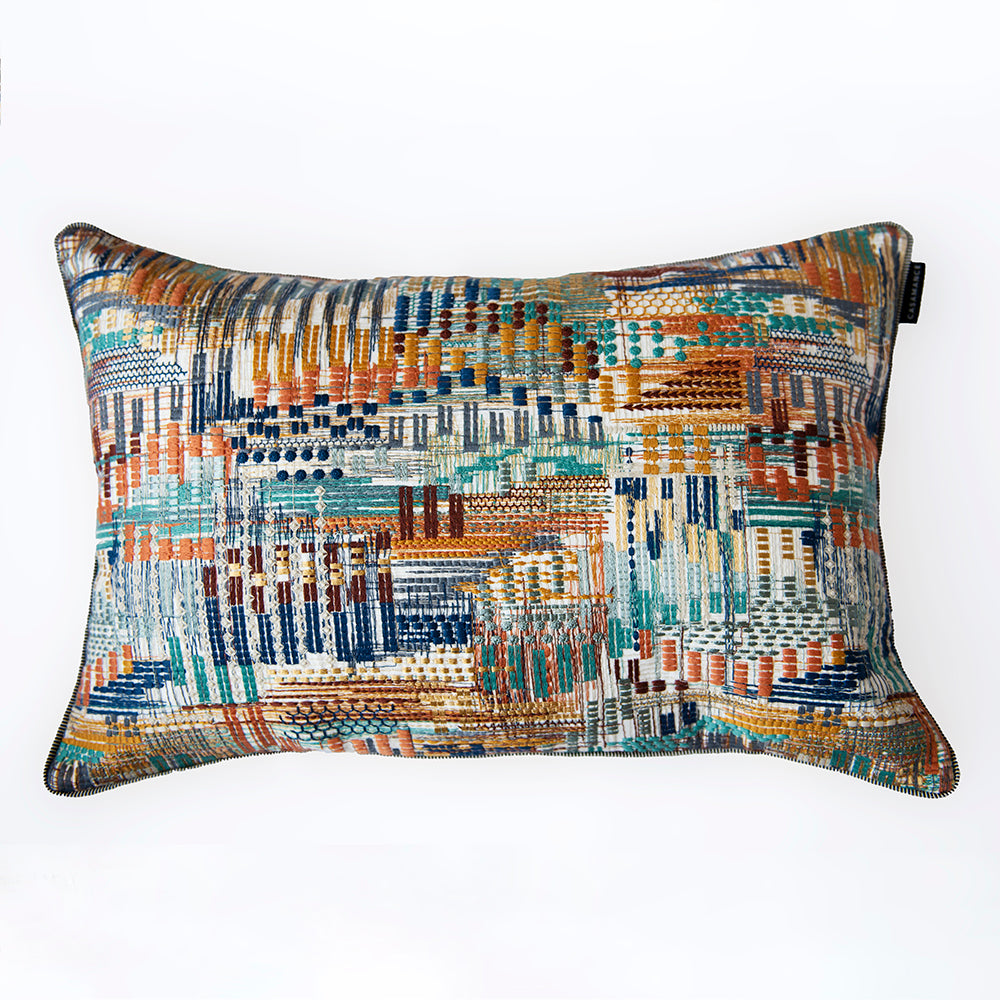 Cushion - Point De Vue - Burnt Orange Turquoise