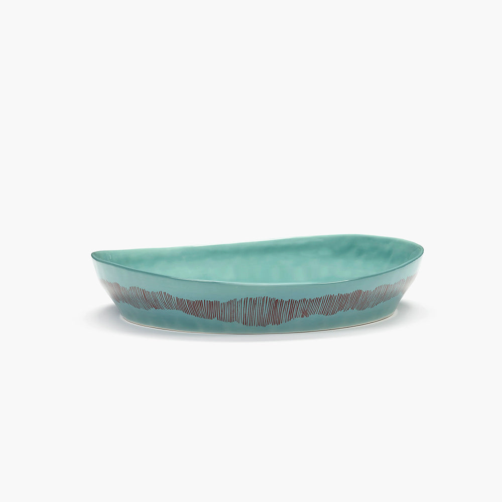 This plate in azure blue colour brings cheerfulness to the table immediately. But, it's organic brush strokes that complete the plate and perfectly match the atmosphere of Ottolenghi's Feast collection.