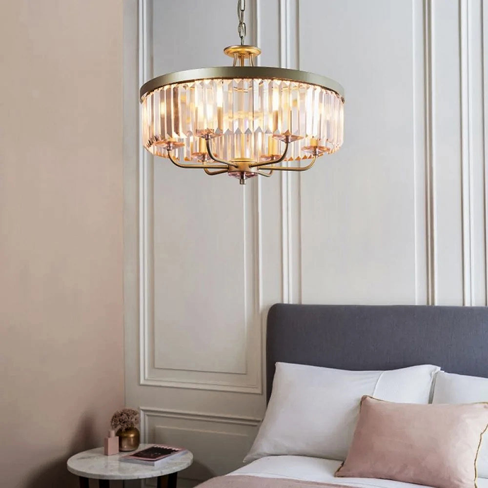 The Elegant infused crystal lighting offers a traditional yet striking style for your home. Available in three finishes- bright nickel plate with clear facet glass, champagne painted finish with rose tinted cut glass and matt black painted finish with clear cut glass details. The pendant can be adjusted for height at the point of installation.