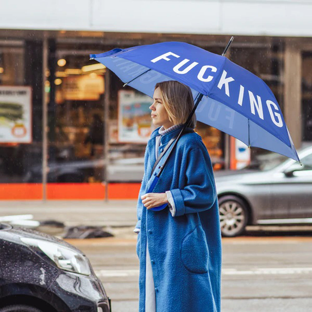 With its "fucking rain" message, you can add a touch of humour to grey days and show that you don't like the rain.