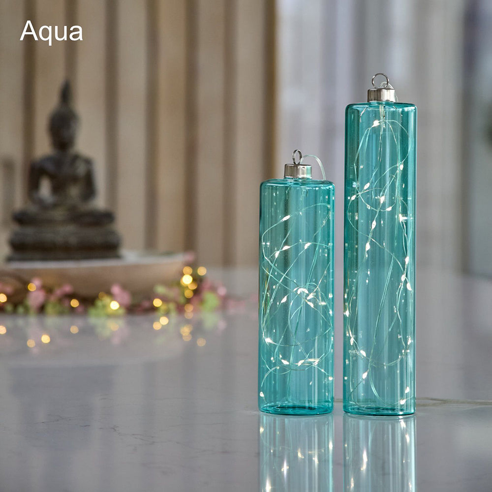 Glass Cylinder LED Lights – set of 2 – Aqua