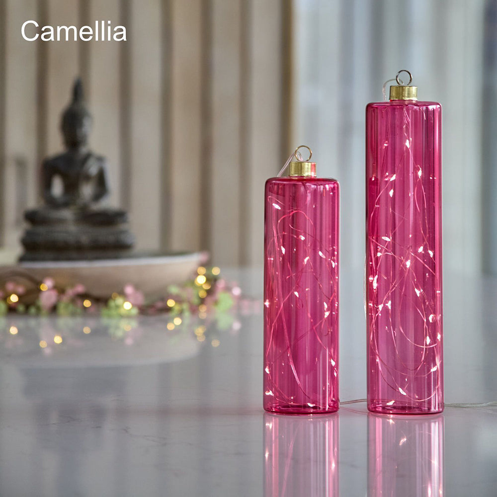 Glass Cylinder LED Lights – set of 2 – Camellia