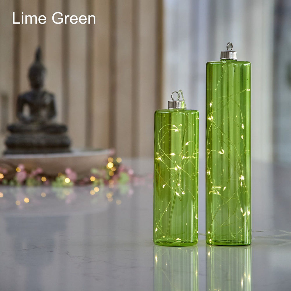 Glass Cylinder LED Lights – set of 2 – Lime Green