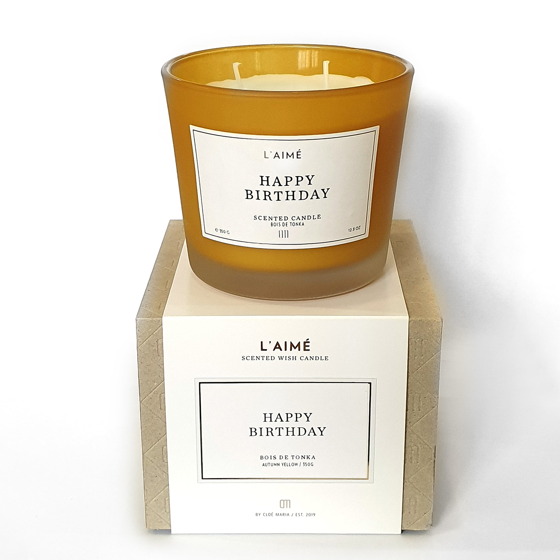 L'aime Scented Candle - "Happy Birthday" - Bois De Tonka Scent