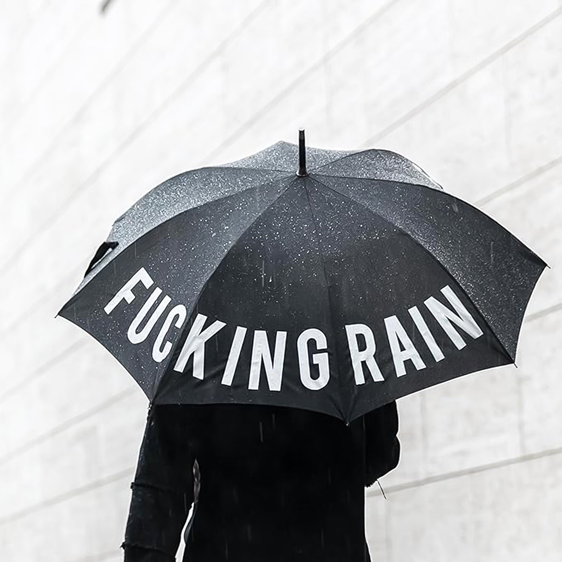 With its "fucking rain" message, you can add a touch of humour to grey days and show that you don't like the rain.