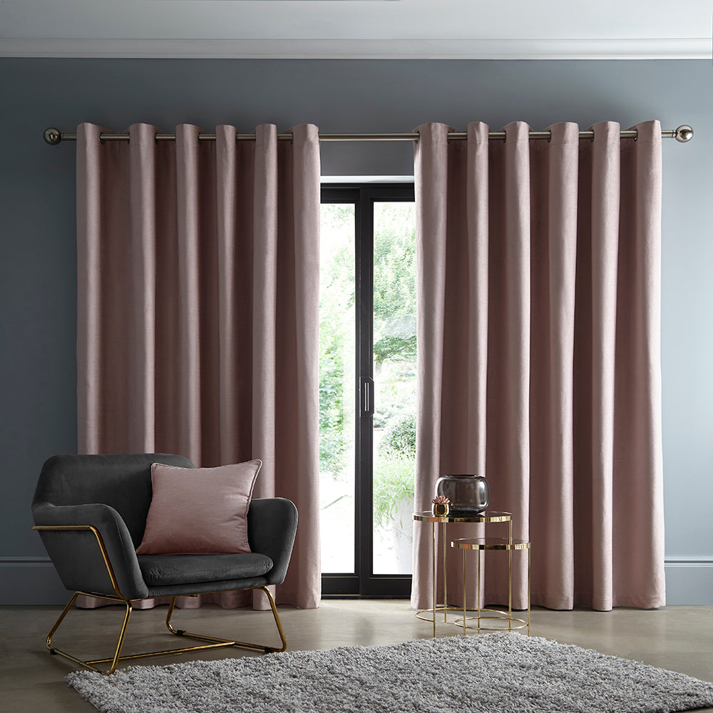 Arezzo is a chenille woven curtain with full black out properties in a sumptuous blush colourway.