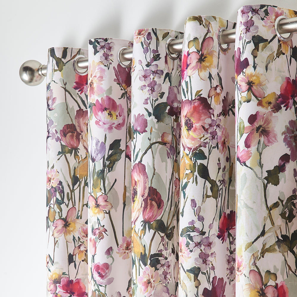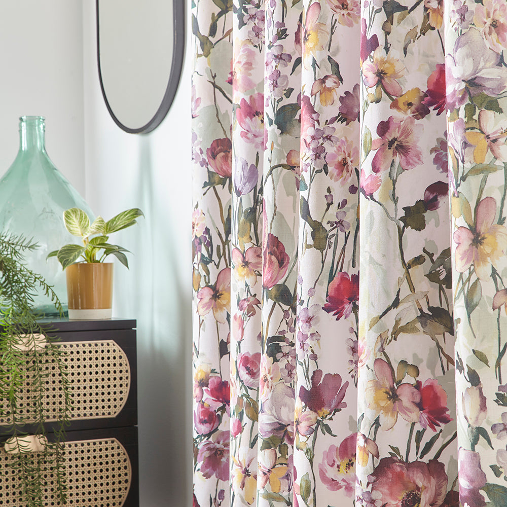 Painterly blooms in dusty rose and soft magenta tones spring forth from the Antique ground, a creamy neutral, softened further with strokes of watercolour sage green for a truly beautiful, serene meadow print. These digitally printed, eyelet ready made curtains have a textured dry handle base cloth and a white polycotton lining.